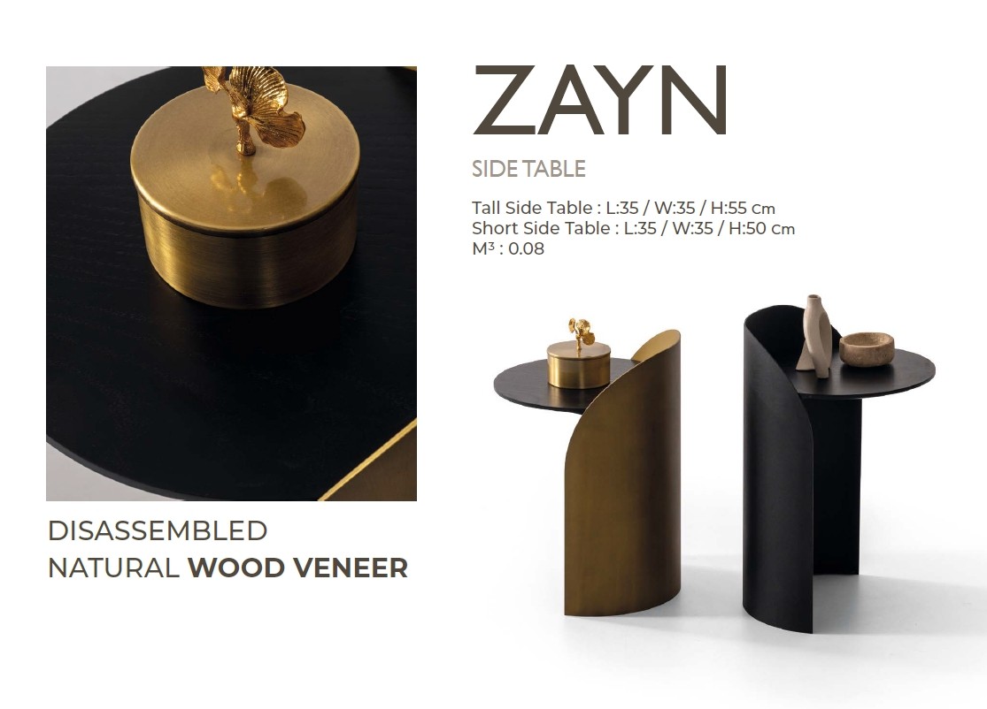 Zayn İkili Ahşap Tablalı Metal Zigon Sehpa Seti 35x35cm
